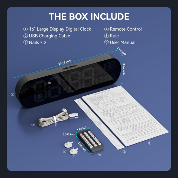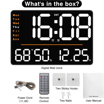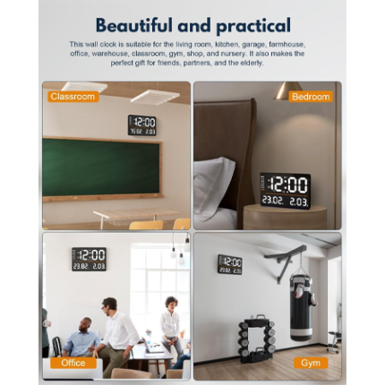 16 Inch Digital Wall Clock with Large LED Display, Date, Week, Temperature and Humidity, Countdown, Alarm, Timer, DST, Auto and Custom Brightness, Ideal for Home, Living Room, and Office