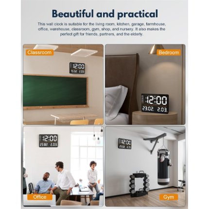 16 inch, 16 inch clock, alarm clock, bedside clock, compact clock, desk clock, digital clock, dual alarm, lcd clock, modern clock, plug in clock, portable clock, smart clock, table clock, wall clock