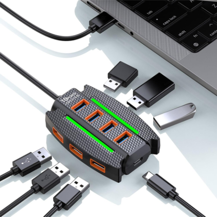 10-Port USB 3.0 Hub with Power Adapter – High-Speed Multiport USB Splitter with 3.9ft Cable, Compact USB Extension Dock for Desktop, Laptop, Xbox, Camera, Keyboard, and Mouse