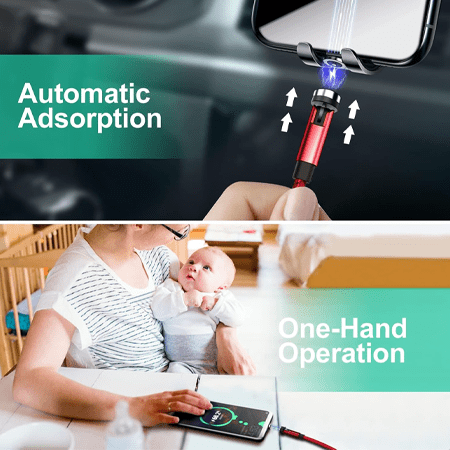 3-in-1 magnetic charging cable with 540° rotating heads, designed for fast, convenient charging of multiple devices. Durable nylon braided design with strong magnetic tips ensures stable connections, dust protection, and long-lasting performance. Supports up to 2A fast charging and data syncing for Android, iPhone, tablets, and other devices.