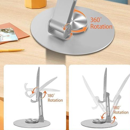 The Zm-0113h desktop stand is a foldable, adjustable holder for smartphones and tablets from 4.7 to 13 inches. Made from durable metal and plastic with anti-slip silicone pads, it keeps devices secure and scratch-free. Its 360-degree rotation and multi-angle design provide ergonomic viewing, making it ideal for home, office, or travel use.
