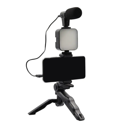 AY-49 Vlogging Kit for Mobile Phones with Tripod, LED Light and Microphone