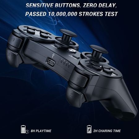 Compatible with Sony PlayStation 3 and PC Windows 7/8/10, this wireless controller is plug-and-play for PS3 and includes a USB cable for use on PC. It supports Double Shock 3 vibration and 6-axis motion sensing, delivering immersive gameplay with every explosion, shot, and hand movement with 600mAh battery.
