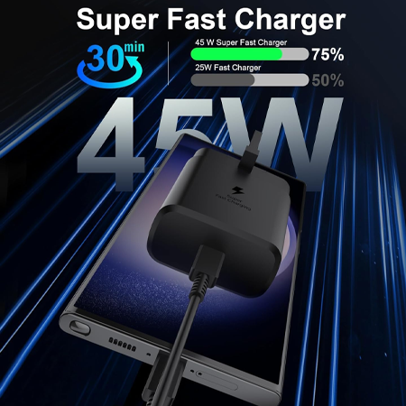 Super-Fast 45W USB-C Charging Adapter for Samsung Galaxy – UK Plug Fast Charger for S24 Ultra, S23 Ultra, S22 Ultra, S21 Ultra, Note 20 Ultra, Z Fold5, A Series, and M Series